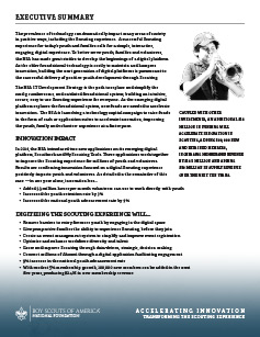 The prevalence of technology can dramatically impact many areas of society in positive ways, including the Scouting experience. A successful Scouting experience for today’s youth and families calls for a simple, interactive, engaging, digital experience. To better serve youth, families and volunteers, the BSA has made great strides to develop the beginnings of a digital platform. As the older foundational technology is costly to maintain and hampers innovation, building the next generation of digital platforms is paramount to the successful delivery of positive youth development through Scouting.
